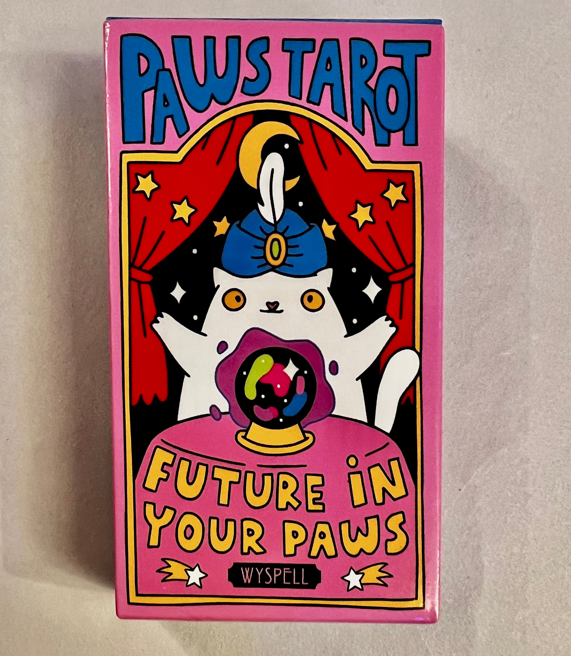 Step into a whimsical world where intuition meets feline charm. The Paws Tarot Deck features all 78 Major and Minor Arcana cards reimagined through the eyes of playful cats. Each card bursts with bright colors—especially bold pinks—and cartoon-style artwork that makes readings lighthearted, approachable, and full of personality.